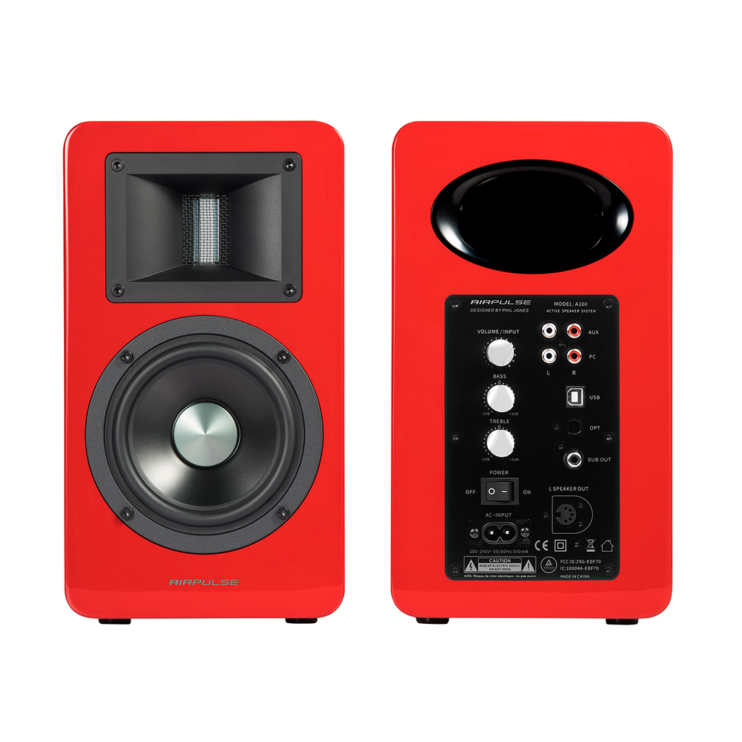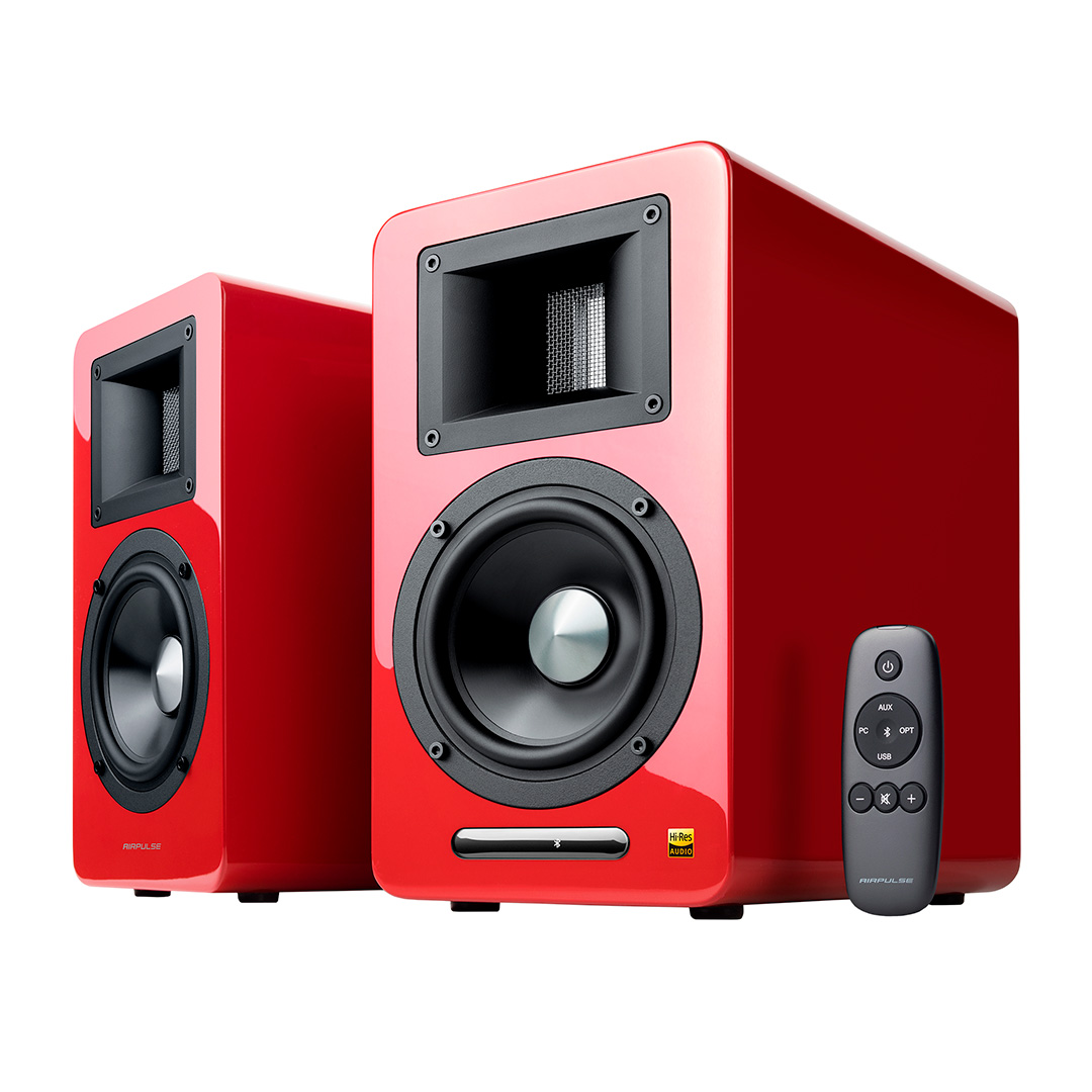 Edifier A100 Red — полочная активная стереосистема 2.0 для рабочего стола и небольшой комнаты, созданная для детального и чистого звучания. Двухполосная схема с фирменным ленточным твитером в рупорном оформлении раскрывает прозрачные высокие частоты вплоть до 40 кГц, а 5-дюймовый НЧ-СЧ динамик обеспечивает плотный и собранный бас. Внутренняя цифровая обработка сигнала и точная настройка усиления помогают получить ровную подачу на любой громкости. Для удобства есть пульт ДУ и регулировки тембра, а также набор входов для ПК, ТВ и внешних источников. Bluetooth 5.0 с поддержкой aptX упрощает подключение смартфона, а выход на сабвуфер позволяет расширить низкие частоты при необходимости.