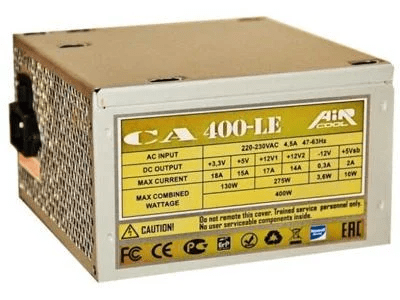 Блок Питания AiR-Cool 400W 230V 20+4P PATA+SATA+FDD FAN 12cm CA-400LE Черный