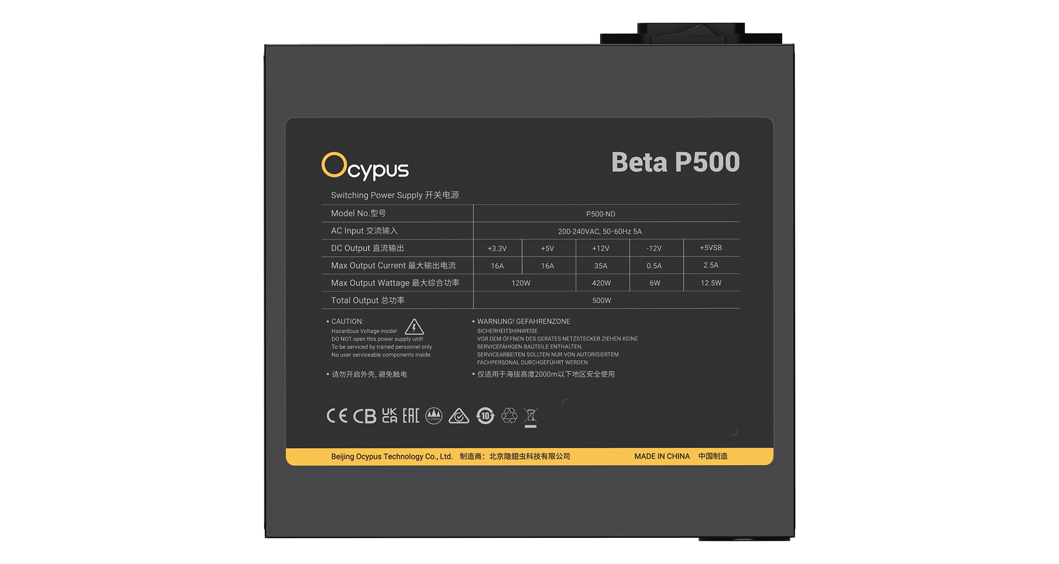 Блок питания Ocypus Beta P500 Черный 500W Non modular, Beta-P500-N1HDBK024X-EU