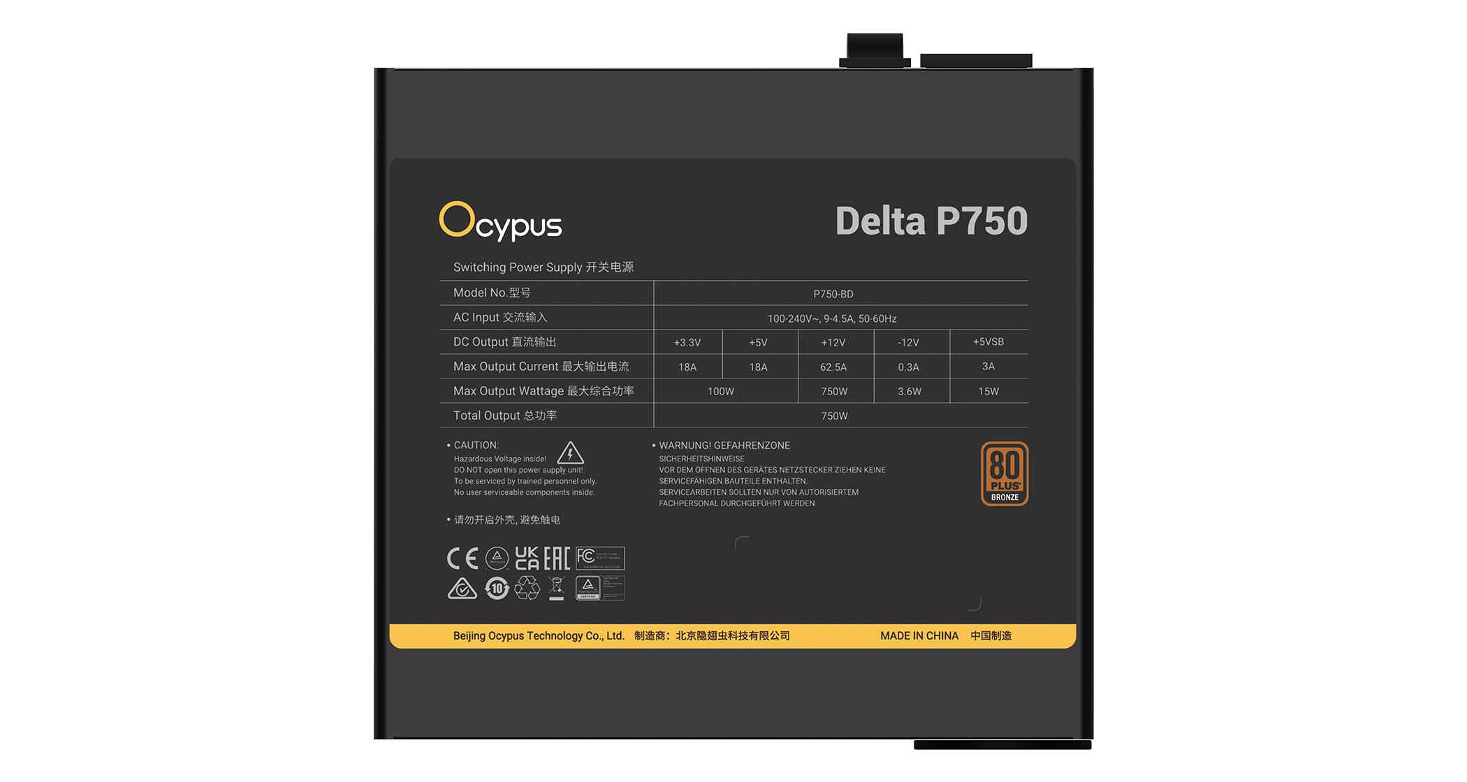 Блок питания Ocypus Delta P750 Черный 750W Non modular, 80+ Bronze, КПД 87% Delta-P750-B1FDBK024X-E