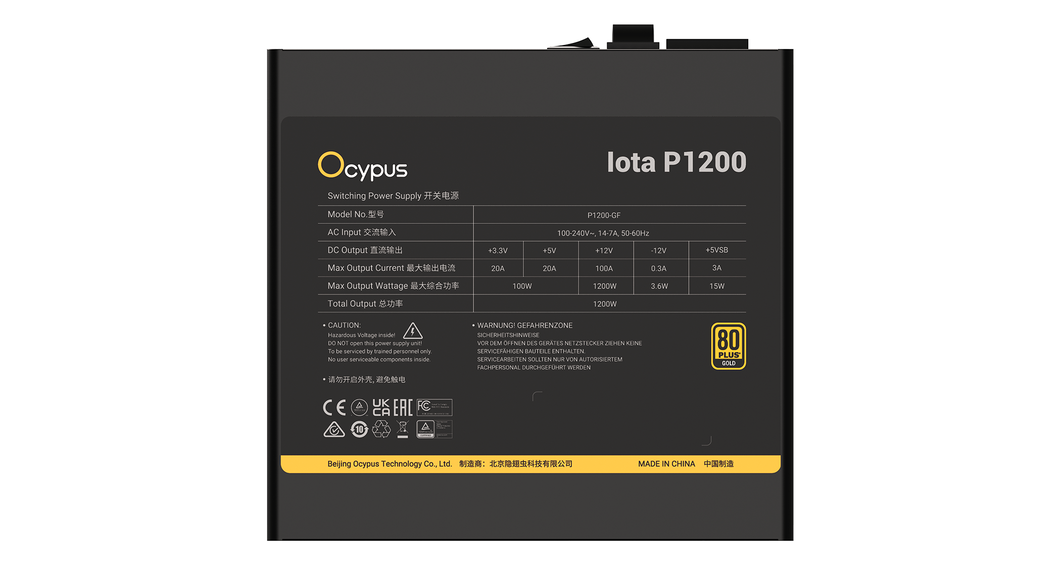 Блок питания Ocypus Iota P1200 Черный 1200W Full Modular, 80+ GOLD, КПД 91% Iota-P1200-G1FFBK024X-EU