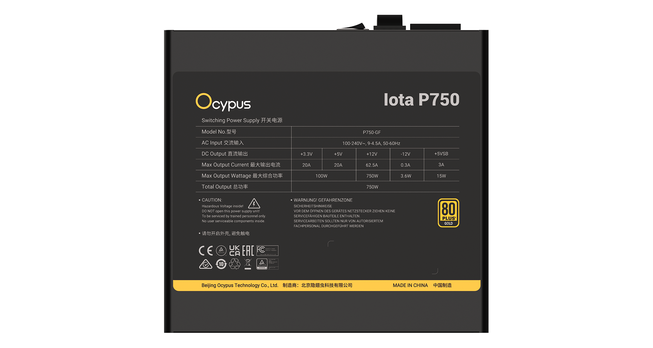 Блок питания Ocypus Iota P750 Черный 750W Full Modular, 80+ GOLD, КПД 91% Iota-P750-G1FFBK024X-EU