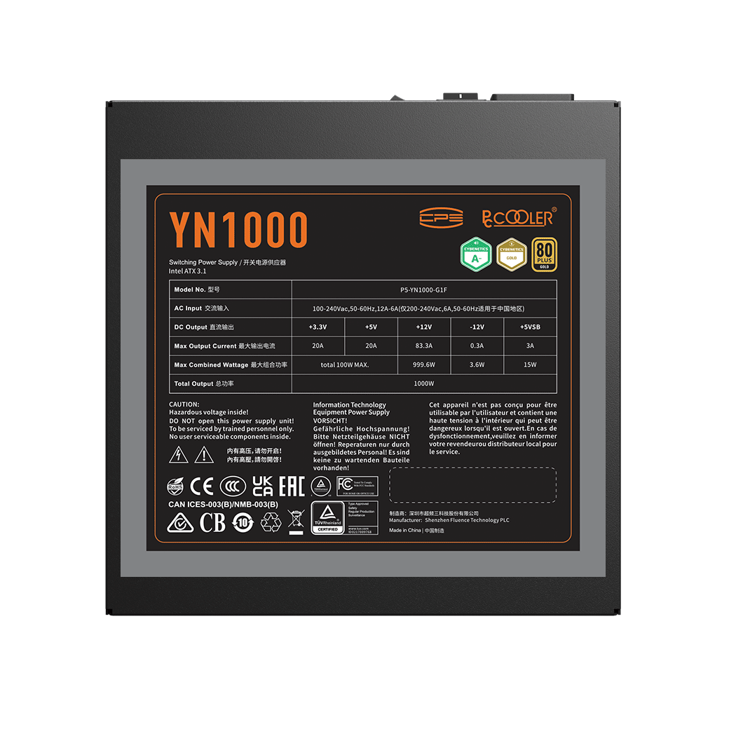 Блок питания PCCooler YN1000, 1000W, Modular, 80+ GOLD, Fan 135mm, P5-YN1000-G1F