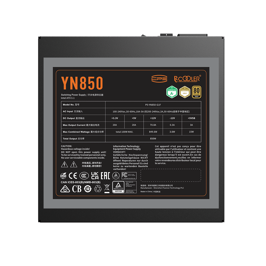 Блок питания PCCooler YN850, 850W, Modular, 80+ GOLD, Fan 135mm, P5-YN850-G1F