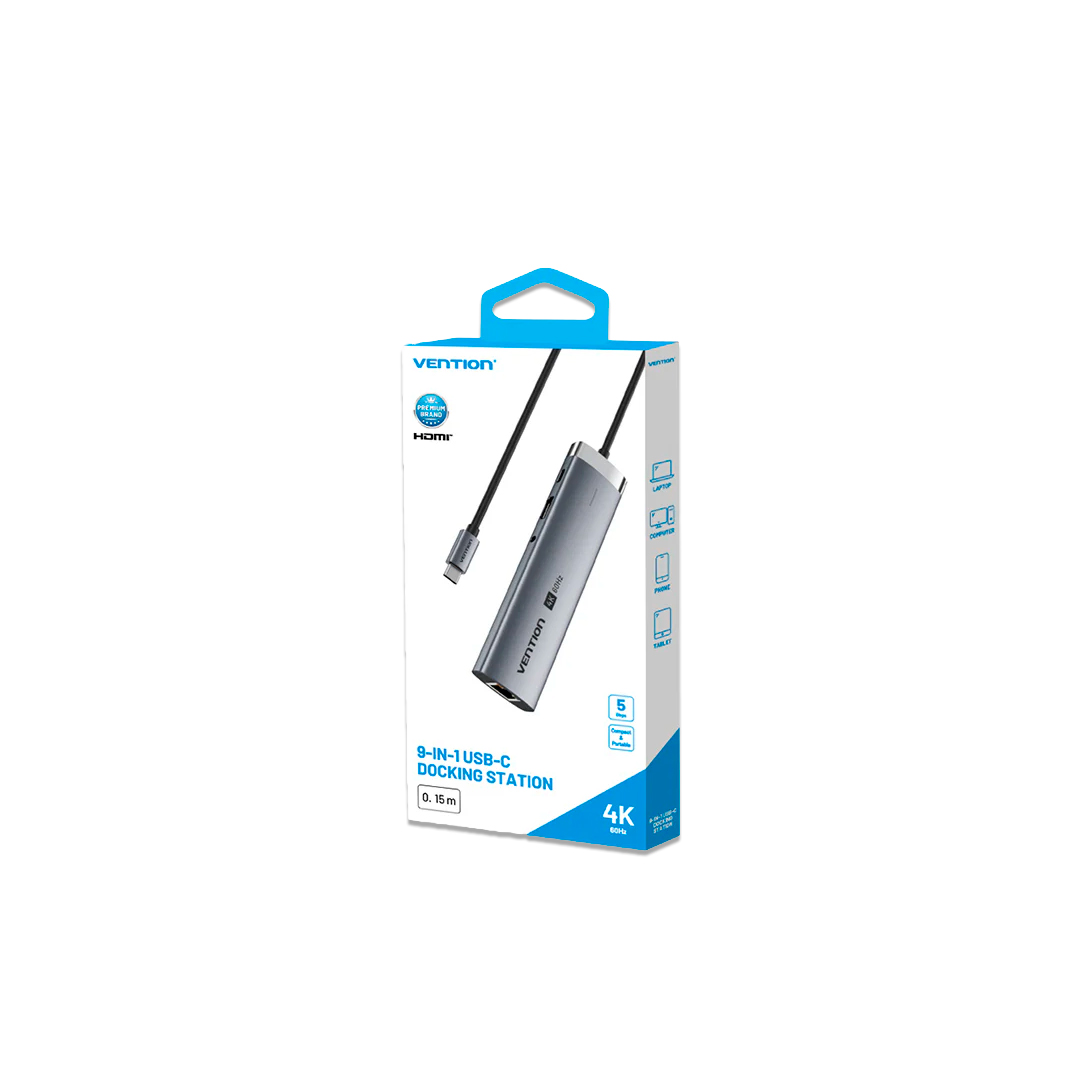 Докстанция Vention TGVHB ‹USB-C to HDMI/USB 3.2 Gen 1 Type-C/USB 3.0/USB 2.0/RJ45/SD/TF/TRRS 3.5/PD›