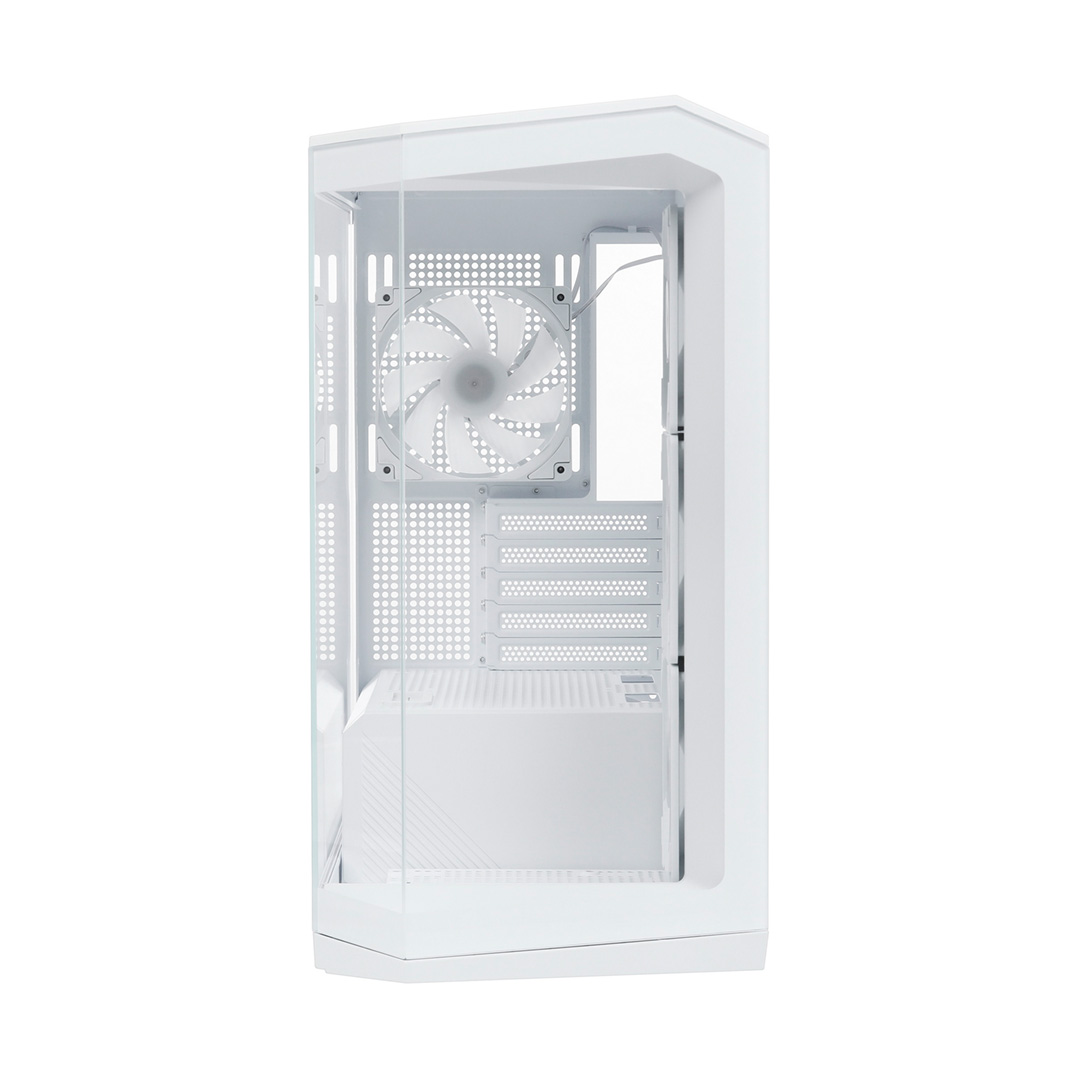 Белая версия корпуса MSI MAG PANO M100R PZ выполнена с акцентом на демонстрацию внутреннего наполнения благодаря боковой панели из закалённого стекла и обзорному углу до 270 градусов. Подходит для материнских плат форм-фактора micro-ATX и ITX, в том числе с технологией Back-Connect, что позволяет скрывать большинство кабелей и подключений за платой. На фронтальной панели вы найдёте порт USB 3.2 Gen 2×2 Type-C с пропускной способностью до 20 Гбит/с, а также USB 3.2 Gen 1 Type-A для подключения накопителей и аксессуаров. Для охлаждения предусмотрена установка до 10 шт. 120 мм вентиляторов, включая предустановленные 3 боковых и 1 задний ARGB-вентилятор, встроенный контроллер ARGB-PWM позволяет легко настроить подсветку. Корпус поддерживает установку радиатора СВО на верхней панели размером до 360 мм, что делает его отличным выбором для игровой системы или мощного рабочего ПК, который хочется показать.