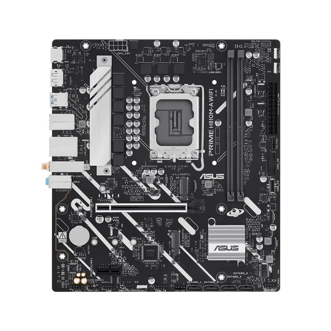Материнская плата ASUS PRIME H810M-A WIFI, LGA1851 H810 2xDDR5 4xSATA 2xM.2 HDMI DP USB-C mATX